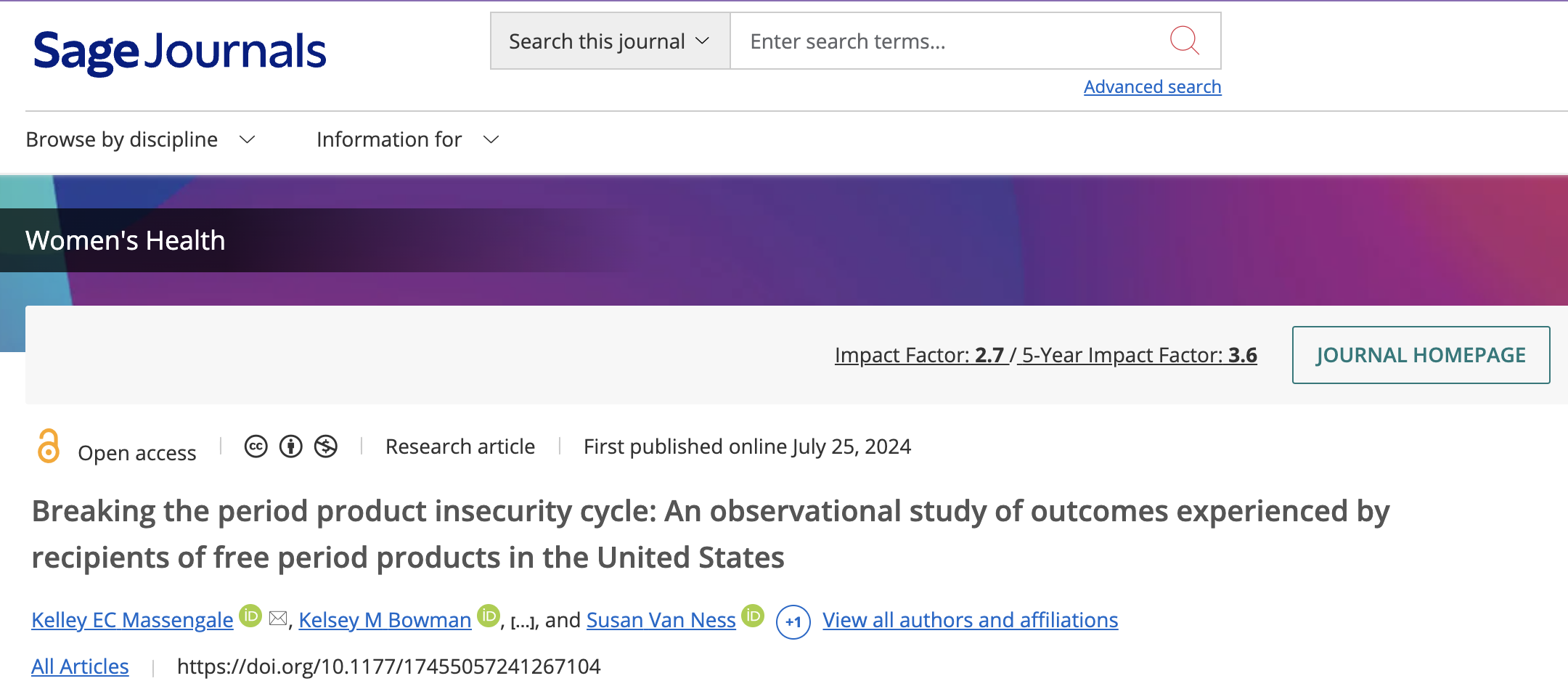 The United States is increasingly recognizing period product insecurity, insufficient access to menstrual products and limited private spaces for managing menstruation due to financial constraints, as an issue impacting the well-being and dignity of Americans. One strategy to address period product insecurity has been distributing free period products via period supply banks. The outcomes of period product distribution outside the school setting are absent from the literature.
