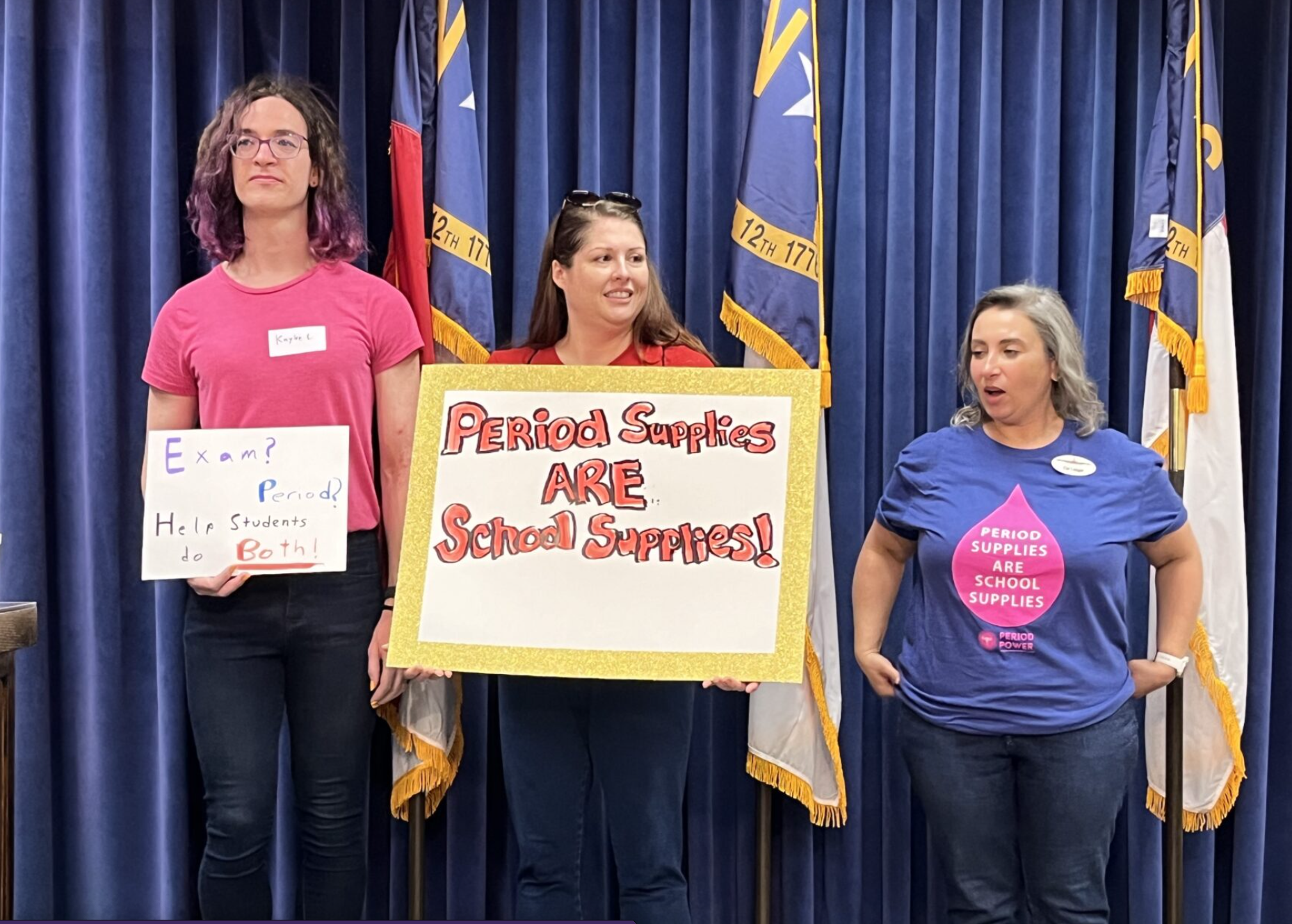 Every day, North Carolina students who cannot afford period supplies are forced to ask teachers or school staff for feminine hygiene products. Some students miss school because they don’t have tampons or menstrual pads at home.